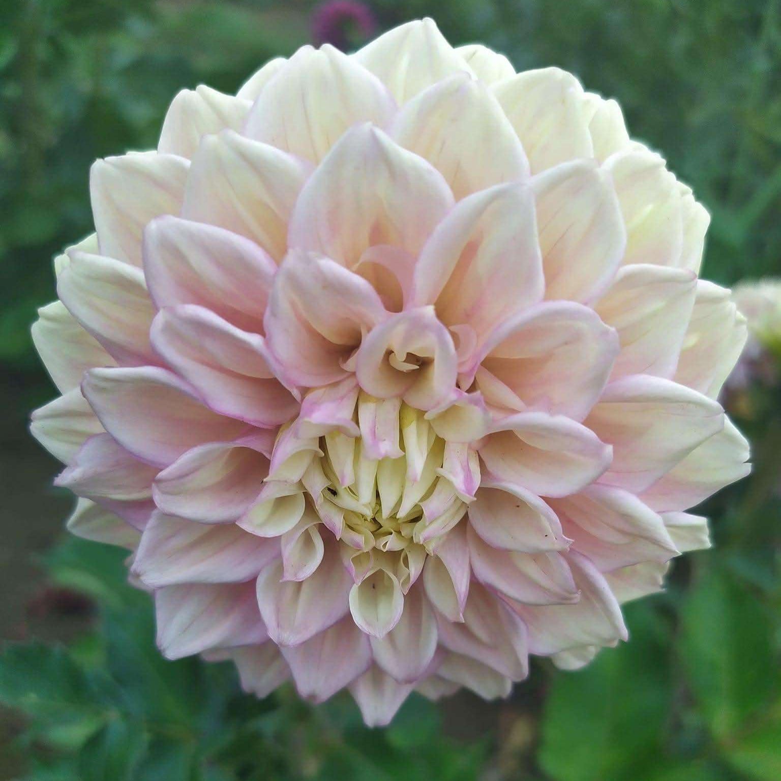 Sugartown Sunrise is a formal decorative dahlia with pastel pink petals that fade to soft lemon at the centre. It blooms from mid to late season and grows to around 1.2 to 1.5 metres tall. With its delicate colouring and upright stems, it’s ideal for cutting gardens and brings a gentle, luminous touch to garden beds.